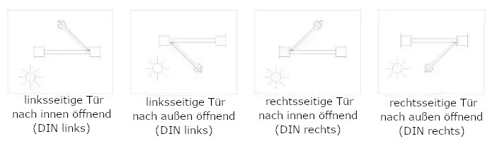 - Befindet sich der Türgriff auf der linken Seite, öffnet sich die Tür nach links.