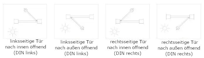 - Befindet sich der Türgriff auf der linken Seite, öffnet sich die Tür nach links.