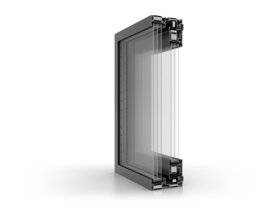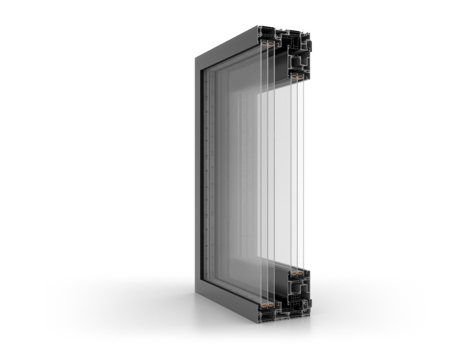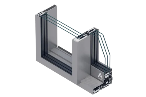 Mit einer Flügeltiefe von 82 mm und einer Rahmentiefe von 186 mm trägt das System Flügel mit einem Gewicht von bis zu 600 kg. Es ist in drei thermischen Varianten erhältlich, namentlich ST, SI und SI+, und diese ermöglichen eine Anpassung an unterschiedliche Energieanforderungen, mit Uw-Werten ab 0,60 W/m²K (je nach Konfiguration).